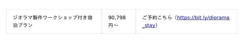 含まれるもの:ホテルツアー、お食事代、ジオラマ製作ワークショップ