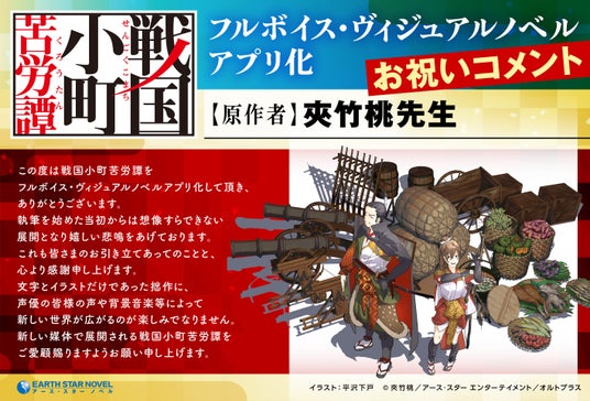 このたび、株式会社アース・スター エンターテイメント(東京都・品川区)が刊行する【アース・スターノベル】と【アース・スター コミックス】にてシリーズ累計300万部を突破している人気作品『戦国小町苦労譚』のフルボイス・ヴィジュアルノベルアプリに出演するメインキャストを、本日同社が主催している「アース・スターノベル10周年夏祭り」内にて発表いたしました。