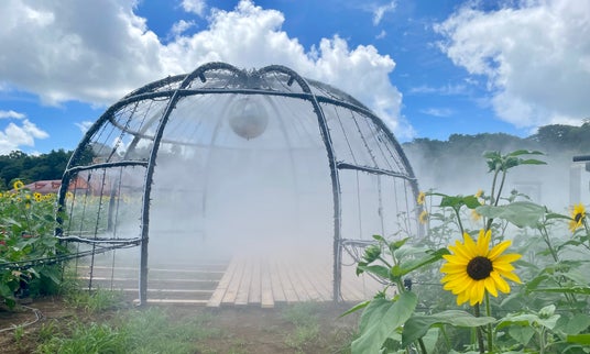ミストとイルミネーションで彩るひまわり畑を「ひまわりミストファンタジア~きらめくミストの中で出会うひまわりの魔法~」と称し、昼間はミストと音楽で涼を味わう空間、夜はミストと光と音楽で幻想的な空間として、お楽しみいただけるよう演出しております。