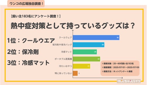 一方で、特に持っていないという回答はわずか6票と少なく、ほとんどの飼い主さんが何かしらの熱中症対策グッズを用意していることが分かります。