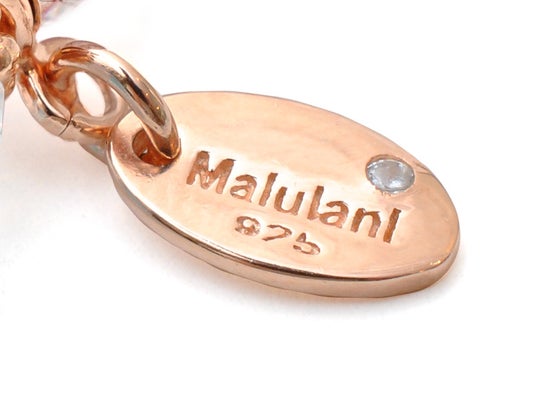 キラリと光るオリジナルチャームには、「神に護られた」という意味のハワイ語「Malulani」と刻印。