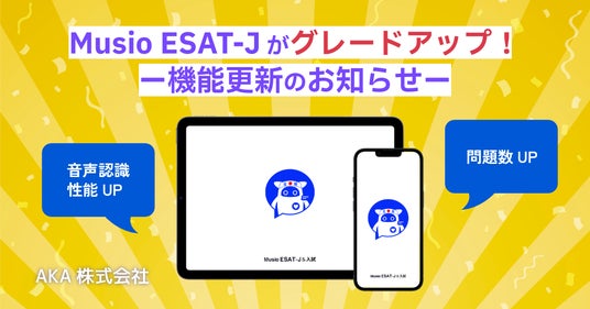 AKAが開発、提供を行っている英語学習のソリューション『Musio ESAT-J』がパワーアップします。新しく問題が追加され、音声認識機能も向上し、より強力なESAT-J対策を行うことができるようになります。