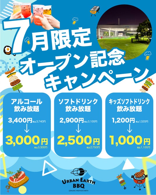 お得なこの機会に、ぜひBBQ&ドリンク飲み放題でアウトドア気分をお楽しみください。