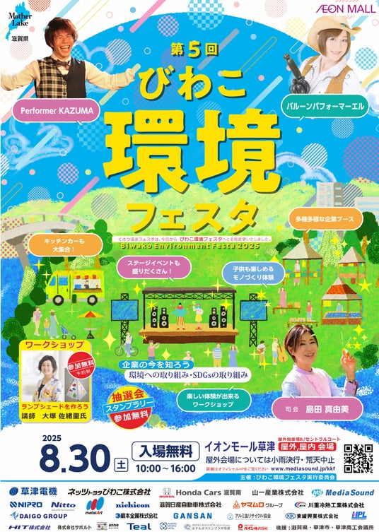 びわこ環境フェスタ実行委員会は、今年で第5回目の開催となる「びわこ環境フェスタ」を8月30日にイオンモール草津にて開催いたします。