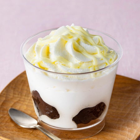 「やまぐちきらら牛乳」を贅沢に使ったミルクムースに、濃厚なホイップクリームをたっぷりと盛り付け。さらに山口銘菓の「ういろう」をコーヒー味に仕立てて使用しました。