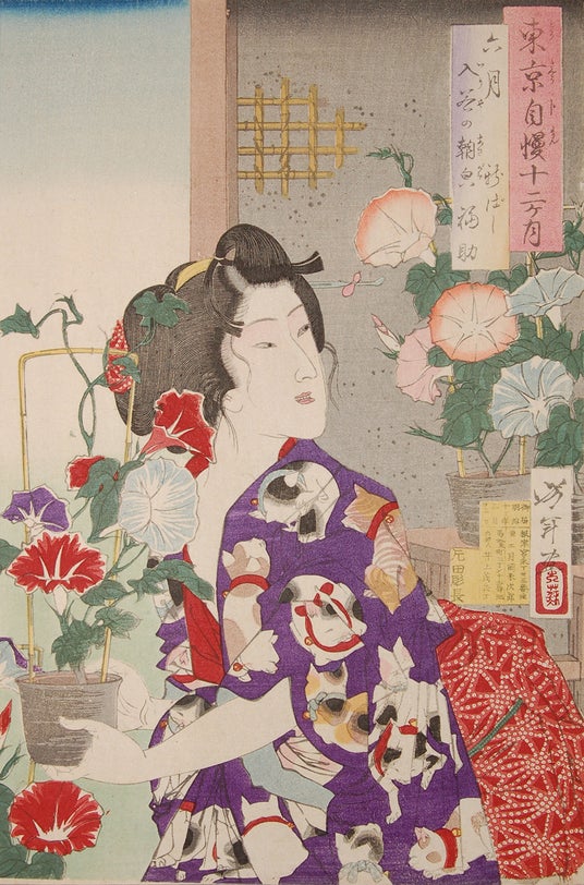 月岡芳年「東京自慢十二ヶ月 六月 入谷の朝顔」