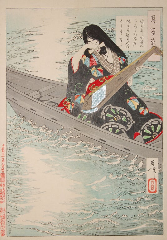 月岡芳年「月百姿 はかなしや波の下にも入ぬへし つきの都の人や見るとて 有子」