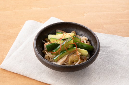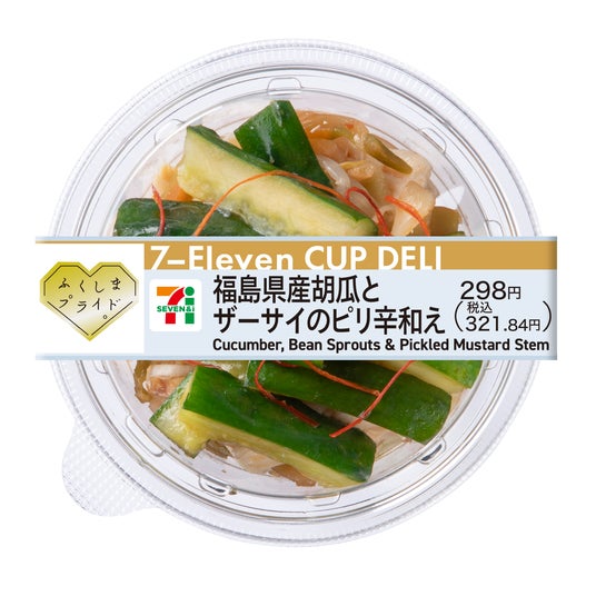 福島県産の胡瓜にザーサイ、もやし、蒸し鶏を組み合わせ、七味とラー油でおつまみ風に仕立てたカップデリ。胡瓜ともやしのシャキシャキした食感も楽しめるピリ辛で夏にぴったりの味わい。