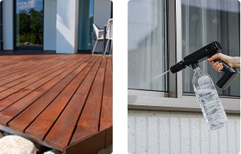 電源も水道も不要。コードやホースに縛られないため、これまで使用しずらかった狭い場所やキッチン、お風呂場、玄関などの家の中でも外でもどこでも自在に使えます。
