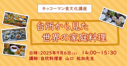キッコーマン国際食文化研究センター(*)は、9月6日(土)14:00から、キッコーマン東京本社KCCホールにおいて、「台所から見た 世界の家庭料理」をテーマにした食文化講座を開催します。28名様限定で会場でご参加いただけるほか、YouTubeライブ配信でもご視聴いただけます。
