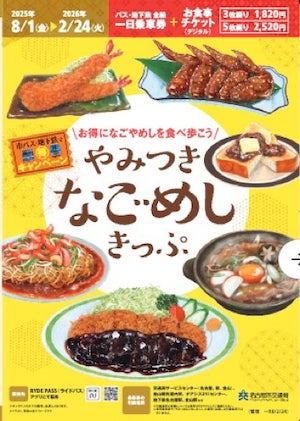 専用デザインの「バス・地下鉄全線一日乗車券」と人気のなごやめしなどのグルメを楽しめる「お食事チケット」をセットにしたお得な企画乗車券を販売します。