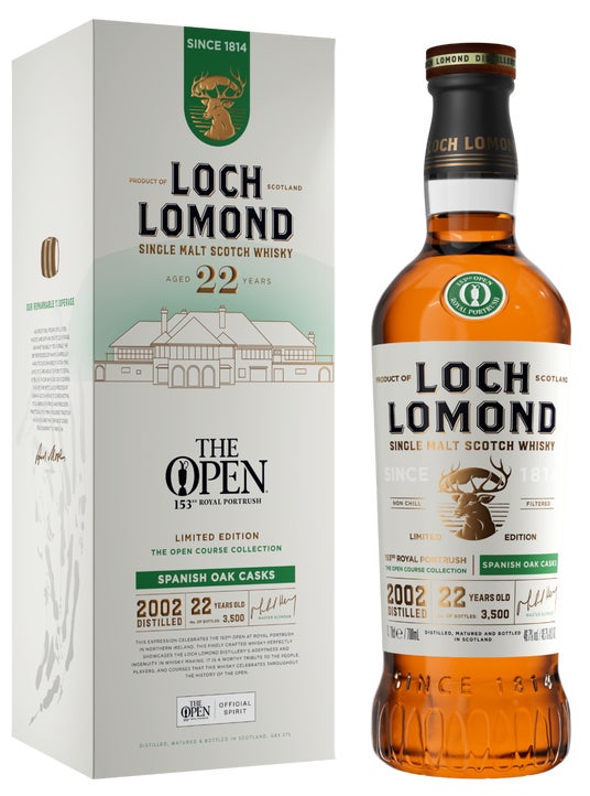 第153回全英オープンゴルフ大会のためにマスターブレンダーのマイケル・ヘンリーとロッホローモンドウイスキーアンバサダーのコリン・モンゴメリーが造り上げた特別なウイスキー。ストレートネックスチルで蒸留された原酒を、アメリカンホワイトオーク樽で21年以上熟成。さらに自社製樽工場で樽の内面にトースト(焼き)を施したスパニッシュオークの新樽で6ヶ月フィニッシュしました。豪華な化粧箱の内側には、1860年にプレストウィックで開かれた第1回大会から2024年の第152回大会までの全ての優勝者の名前がその開催コースと共に記されています。