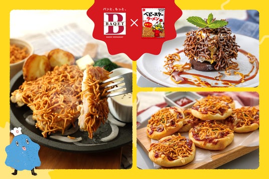 ファン投票で選ばれた「ベビースターラーメン」コラボメニュー3品は、2025年7月22日(月)~8月31日(日)の間、全国のベーカリーレストラン「BAQET(バケット)」で期間限定販売します。
