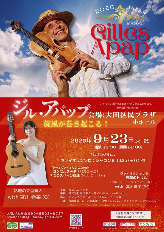 「21世紀の真のヴァイオリニスト」ジル・アパップ来日ツアーコンサート 2025年9月 待望の再来日決定!