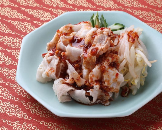 薄切りバラ肉を雲に見立てた「雲白肉(ウンパイロウ)」と呼ばれる四川料理の代表的な前菜。