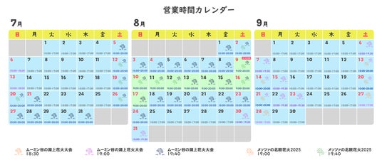 ※少雨決行、強風荒天中止。中止情報についてはムーミンバレーパーク公式サイト、SNS 等でお知らせいたします。また予告なく打ち上げ時間を変更する場合がございます。