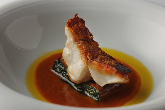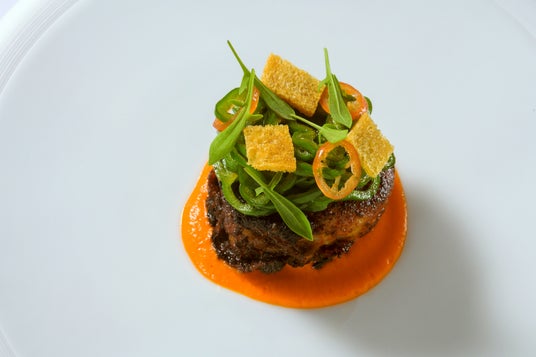 八戸市を中心に沿岸部で親しまれてきた、味噌仕立ての魚の汁物を味わう漁師飯から着想を得た一皿です。味噌と酒粕でマリネしたズッキーニのフリットと、魚の旨味を凝縮させたソースとともに味わいます。炭火の香りとともに味噌のまろやかな余韻が口の中に広がり、味わいに深みが生まれます。暮らしに根づく食文化に、思いを馳せながら味わえる一皿です。