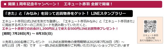 2025年 7月28日(月) ~ 8月3日(日)エキュート赤羽みなみ 1st Anniversary 全館で開催!