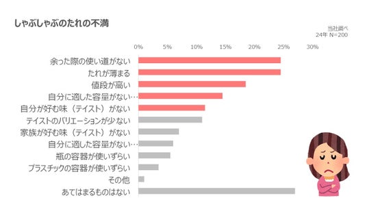 一方で、たれに対する不満として「余った際の活用が難しい」「適量サイズがない」「味が薄まる」「好みの味が見つからない」などの意見もありました。そこで当社では、しゃぶしゃぶをより手軽に楽しめるよう、味・容量・使い勝手の課題を解決し、自分好みに選べる楽しさを提案するしゃぶしゃぶのたれを開発しました。