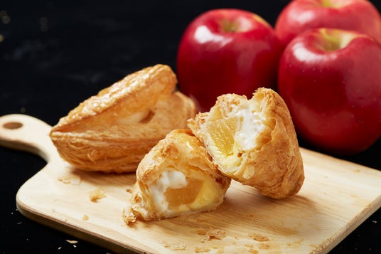 数々の世界大会でNo.1であり続ける、巨匠マルコ・パオロ・モリナーリが、素材選びから製法の隅々までこだわってたどり着いたアップルパイは、厳選した小麦とフランス産発酵バターを使用し、1,000層に折り込んだパイ生地を大きく膨らむよう焼き上げ、自慢のサクサク食感に仕上げています。また、大きめにカットした林檎を贅沢に使用することで、ザクっとした食感と、林檎本来の酸味や香りを味わっていただけます。林檎に合わせるカスタードクリームは、バニラの香りと卵のコク、ミルクの甘さに加えて、仕上げの豆乳チーズクリームを使用することで優しく上質な味に仕上げています。
