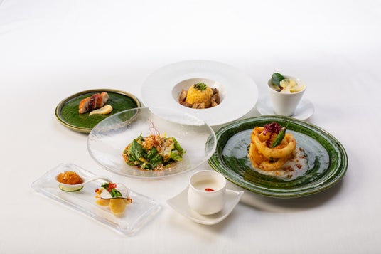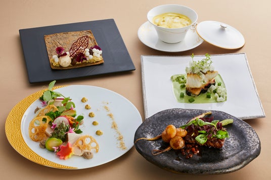 但馬どりの前菜や、兵庫県産湯葉を使用したスープ、甘みたっぷりの淡路島産玉葱を添えたメインの鱧、爽やかな香り漂う朝倉山椒の炒飯など、兵庫県産の食材をふんだんに取り入れた特別ランチをご用意しました。新鮮な山の幸、海の幸を活かした贅沢な味わいをご堪能ください。