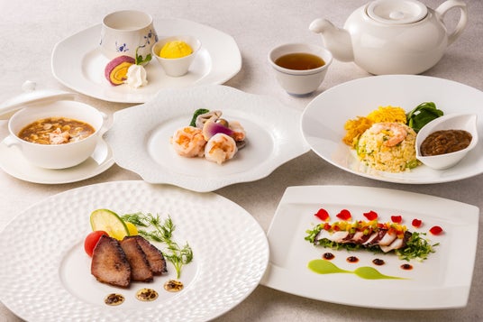 木姜油の香りの前菜から始まり、灘の日本酒を加えた海鮮の炒め、夏から秋にかけて咲く金木犀をソースとして使った神戸ポークの叉焼など様々な香りを感じられるコース。締めの神戸ハイカレーは伝統あるホテルオリジナルブレンドのスパイスで、炒飯と組み合わせることで唯一無二の味わいとなっています。秋の六甲山とポートタワーを眺めながら、優雅なひと時を中国料理と共にお過ごしください。