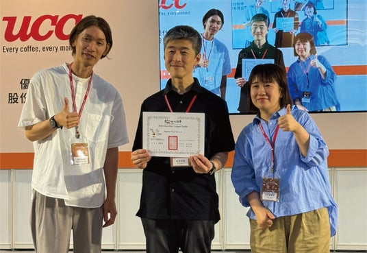 ▲ 萬國珈琲・太田恵美子バリスタ3位受賞の様子(真ん中)