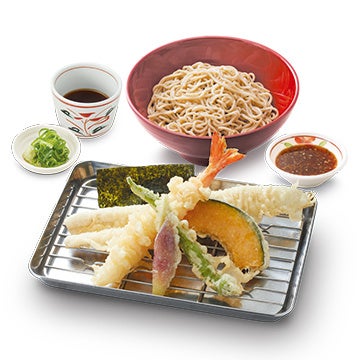 真穴子天ざるそば/うどん 1090円(税込み)揚げたての一本まるごと真穴子天と、ひんやり冷たいざるそば/うどんでさっぱりと。