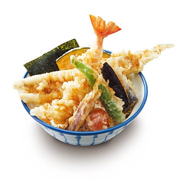 いつでも揚げたての天丼をお値打ち価格で提供できるよう、独自開発の粉・タレ・厳選食材に工夫をこらし、味・品質・揚げたてにこだわっています。季節感があり、ボリュームたっぷりでお得なメニューが魅力となっており、揚げたてサクサクの天ぷらは主食としてもおかずとしてもテイクアウトでもご利用いただけます。
