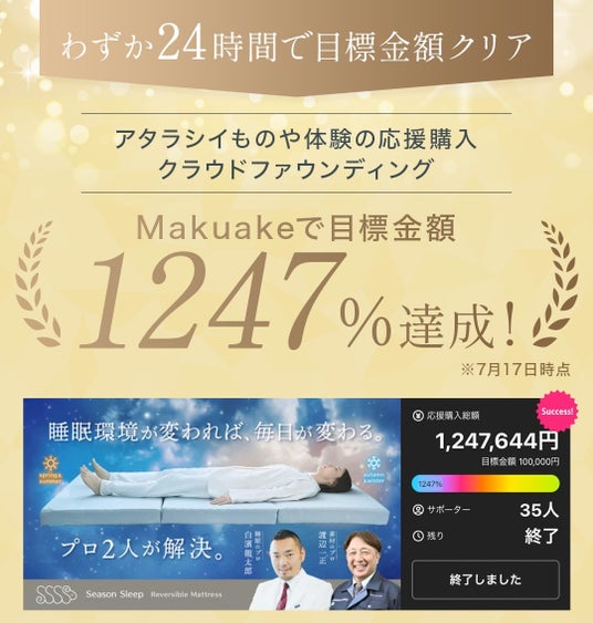 7月24日一般発売開始。Makuakeで人気の「Season Sleep リバーシブルマットレス」楽天市場に登場。