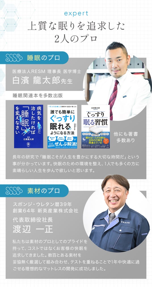 睡眠学博士・白濱龍太郎氏(医師/医学博士)の監修により、快適さだけでなく睡眠の質にも配慮した構造設計です。