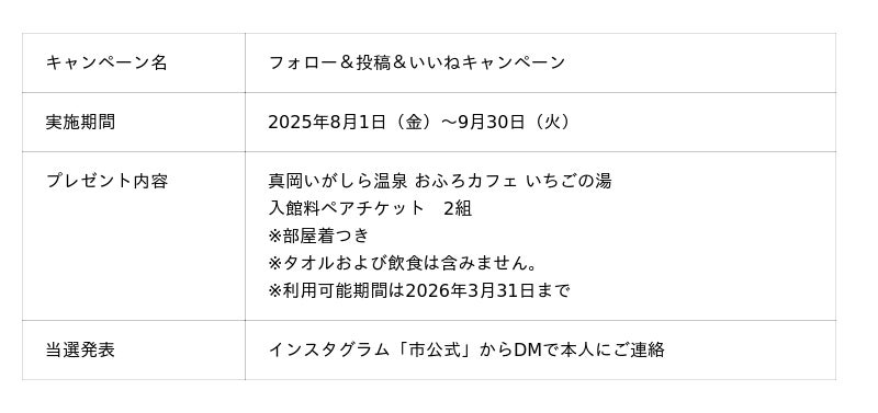 真岡市へお越しになったことがある方に、ぴったりのキャンペーンがスタートします。真岡市への思い出がある方は必見です!市内で撮影した素敵な写真を投稿して、2025年3月27日にグランドオープンしたばかりの「いがしら温泉おふろカフェいちごの湯」ペア入場券をゲットしませんか?