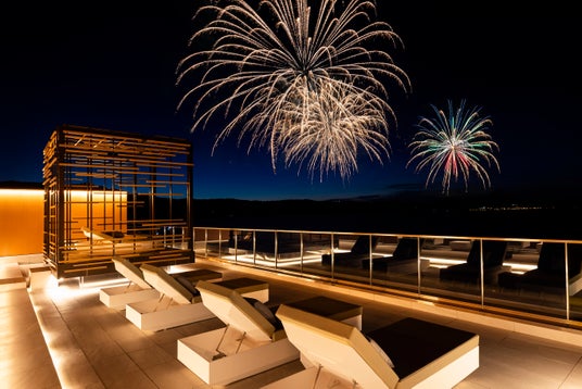 ルーフトップからの、洞爺湖ロングラン花火の様子