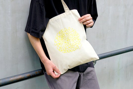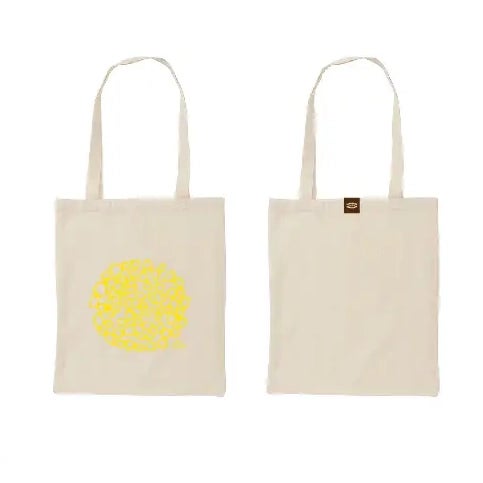 「Dandelion Chocolate」の''D''をモチーフに、たんぽぽの綿毛のようにふわりと広がるデザインが特徴。シンプルで日常使いしやすい生成色に、やわらかな印象のイエロープリントを施しました。A4サイズも収まる実用的なサイズ感です。