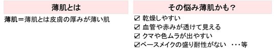 "薄肌"とは皮膚の厚みが薄い肌。乾燥しやすい、血管や赤みが透けて見える、ベースメイクの盛り耐性がない等、"薄肌"の方が感じている肌悩みをカバーする「モイット」が、うるおいで満たしながら素肌風のキレイな肌に仕上げます。