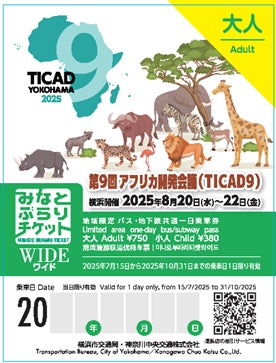 新横浜駅と横浜駅、桜木町駅間を乗換えなしで移動できる横浜市営地下鉄と、連節バス「ベイサイドブルー」、観光スポット周遊バス「あかいくつ」を含むベイエリア周辺の横浜市営バス・神奈中バスが利用できる便利でお得な1日乗車券「みなとぶらりチケットワイド」を、TICAD9特別デザインで販売し、購入された方に特別デザインウェットティッシュ&ステッカーをプレゼント!限定2,000枚の販売です!