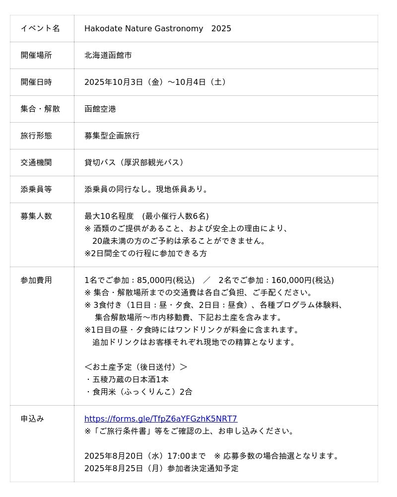 「Hakodate Nature Gastronomy 2025」プログラム・内容