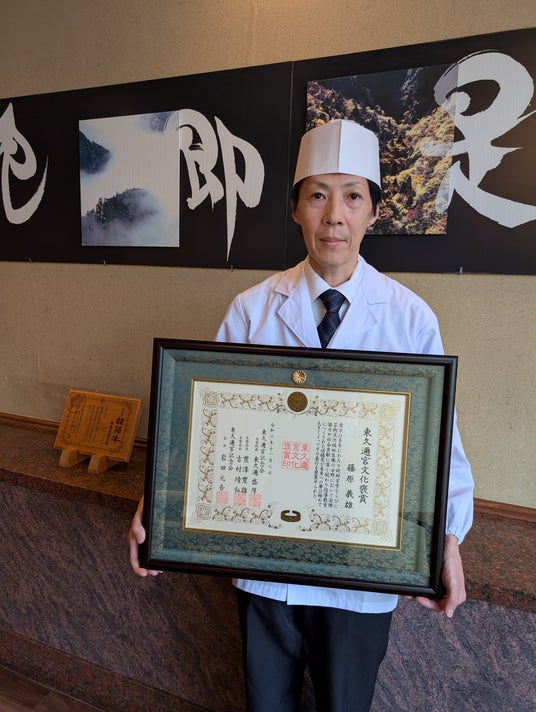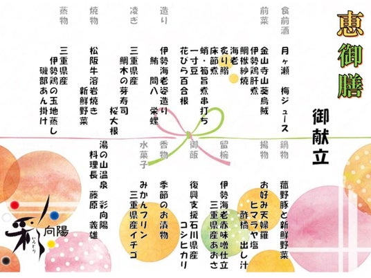 湯の山温泉の旅館「彩向陽」、料理長が「東久邇宮文化褒章」受章!記念に考案した新会席を7月25日から提供開始