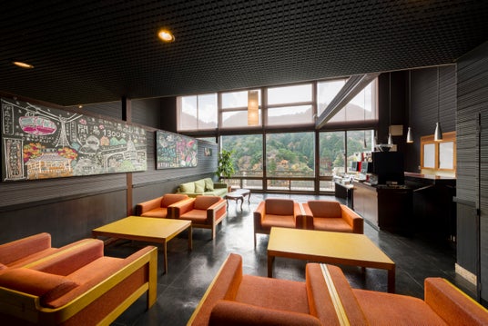 ・ 施設概要:特別室/1室、客室/和室24室(全室御手洗付、うち和室21室、和洋室3室)収容人数/120名、宴会場/大広間80畳、中広間30畳×1、中広間28畳×1、大浴場/展望大浴場2、露天風呂2、ダイニングレストラン/山海の処「満天星」、パブリック/縁日広場