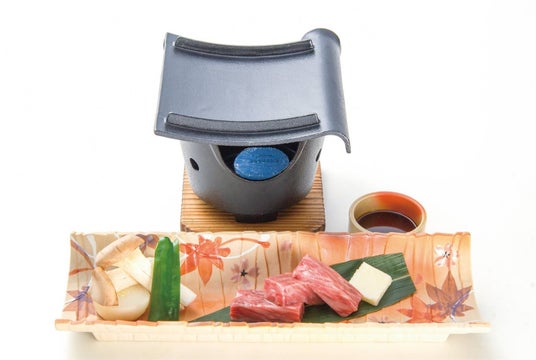 ・お肉 (松阪牛)のタレも伊勢鶏のガラで作ったオリジナルの 「伊勢鶏ガラ野菜タレ」でお召し上がりいただき、 エリンギ、ペコロス、 ピーマンを添え、バターを用いることでコクのある一品に仕上げています。