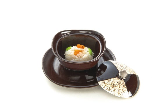 ・一年前から仕込んでおいた唐墨を炙り、枝豆を用いたお凌ぎの「炙り唐墨おこわ」は、もっちりとした食感と香ばしい唐墨の旨みが箸を進めるでしょう。