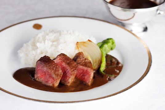 きめ細やかで上品な霜降りの旨味と風味豊かな山形牛フィレ肉のステーキのカレーです。柔らかく焼き上げて甘味を引き出した、淡路産の玉葱のコンフィを添えました。お客さまの目の前でフランベして仕上げる、ワンランク上のカレーをお楽しみいただけます。