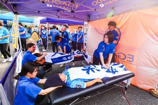この度、横浜FCマッチデーの開催を記念して、笑顔道グループでは特別企画として、無料治療体験ブースを出展いたします。このブースでは、横浜FCの選手たちが日頃から実際に受けているケアや施術を、どなたでも無料で体験していただけます。
