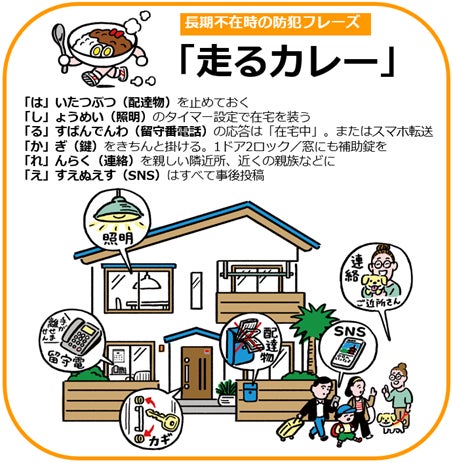 セコムでは、2024年に長期不在時に実施しておきたい防犯対策をまとめた『走るカレー』を考案しました。この夏、帰省や旅行を予定されている方はぜひ「走るカレー」の対策を実施いただき安心してお出かけいただきたいと思います。