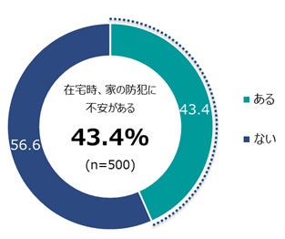 さらに、在宅時の不安で1位の「突然の来訪者」(71.9%)には、モニター付インターホンで用件を確認するほか、ドアチェーンをかけたまま対応するなど慎重に行動しましょう。点検商法や空き巣・強盗などの下見の可能性もあるため、安易に扉を開けたり、個人情報を話したりすることは絶対にやめましょう。