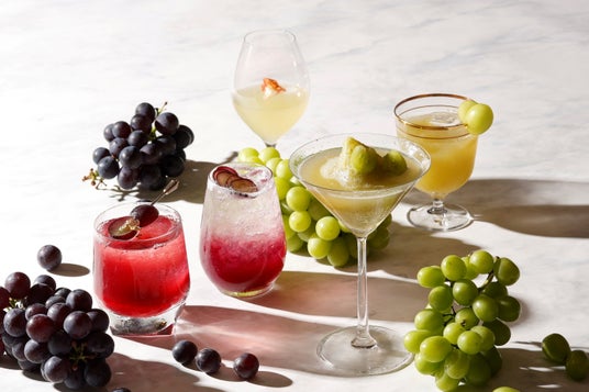 アフタヌーンティーのテーマに合わせ、カクテルも秋一色に。2種のぶどうのおいしさを自在に操るバーテンダーの技とパフォーマンスにもご注目ください。
