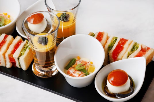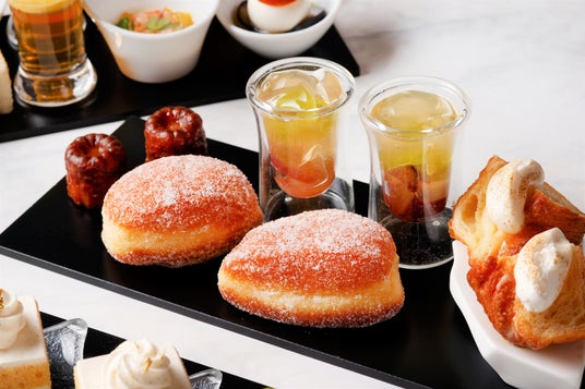 また、ホテル内のイタリア料理 RISTORANTE OZIOをはじめとする洋食部門を統括している料理長 大塚 浩介が手掛けるセイボリーには、「クイニーアマン 大塚スタイル」が初登場いたします。フランスの伝統菓子をスイーツではなく料理として大塚流にアレンジ。表面をブラウンシュガーでキャラメリゼし、甘さ控えめのメイプルクリームをトッピング。クローブ、ナツメグなど4つのスパイスと塩味を添えた新たなシグネチャーです。
