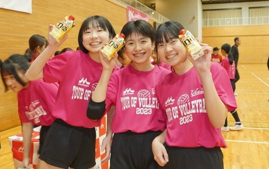 森永乳業と姫路ヴィクトリーナは、2016年より中学生向けのバレーボール教室「森永乳業杯 ツアーオブバレーボール」を開催しています。 竹下 佳江をはじめとする元バレーボール日本代表選手で結成したユニット"ヴィクトリーナドリームス" が講師となり、これまでに延べ14,000人以上の中学生に技術指導を行ってまいりました。