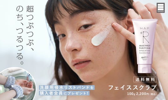 超つぶつぶ×吸着で、触れたくなるつるつる肌へハップアール フェイススクラブ