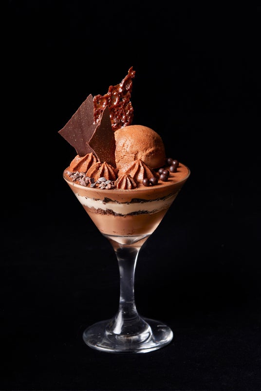フランス ヴァローナ社のチョコレート2種を贅沢に使用した濃厚な味わいのショコラ系パフェ。